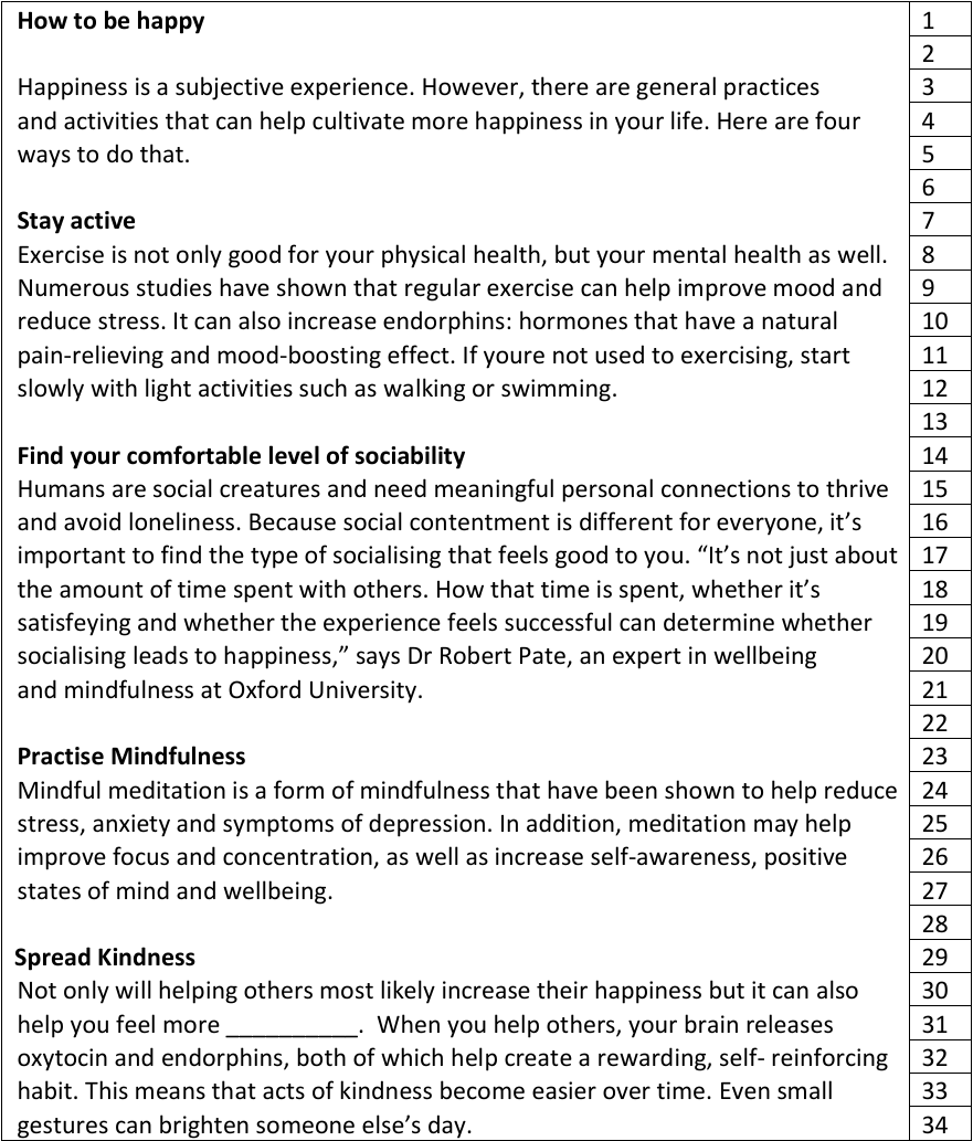 Το τεστ περιλαμβάνει 26 ερωτήσεις (10 ερωτήσεις Listening και 16 ερωτήσεις reading ) και διαρκεί περίπου 20–30 λεπτά.
